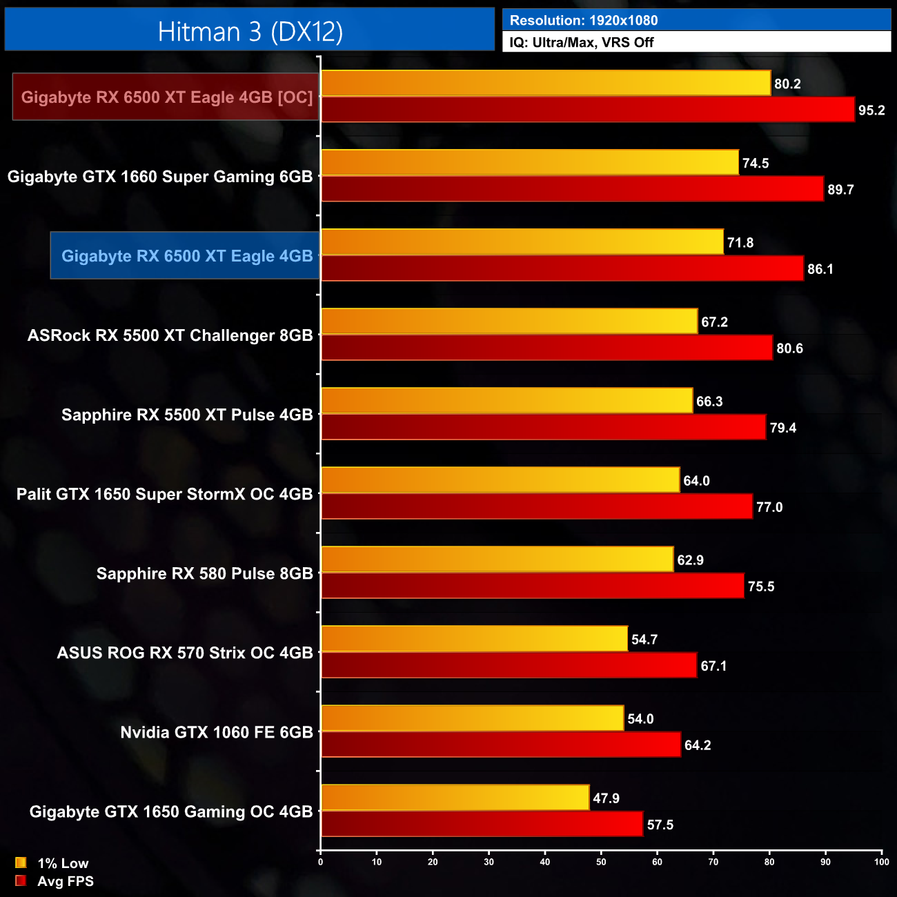 Performance didn't really increase by much at all as a result of this overclock, with the one exception being in Hitman 3.