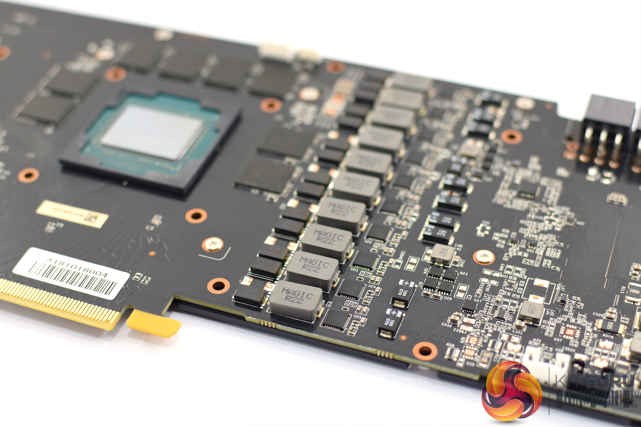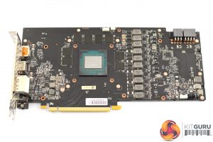 The PCB is pretty easy to get to, only 8 screws need to be removed from the back of the card and then it is not much hassle to prise the heatsink off. The main things to note here are that Palit has upped the power phases, moving from 6+2 of the Founders Edition to its own 8+2 design.