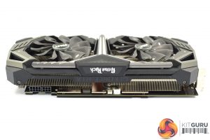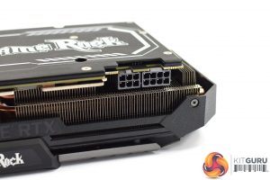 The card itself is essentially the same cooler and shroud as we first saw with the RTX 2080 GameRock Premium back in October. In fact, as far as I can tell, the only way you could tell these cards apart is by the fact that the RTX 2070 has no NVLink connector and also slightly different power connectors – everything else looks identical between the two.