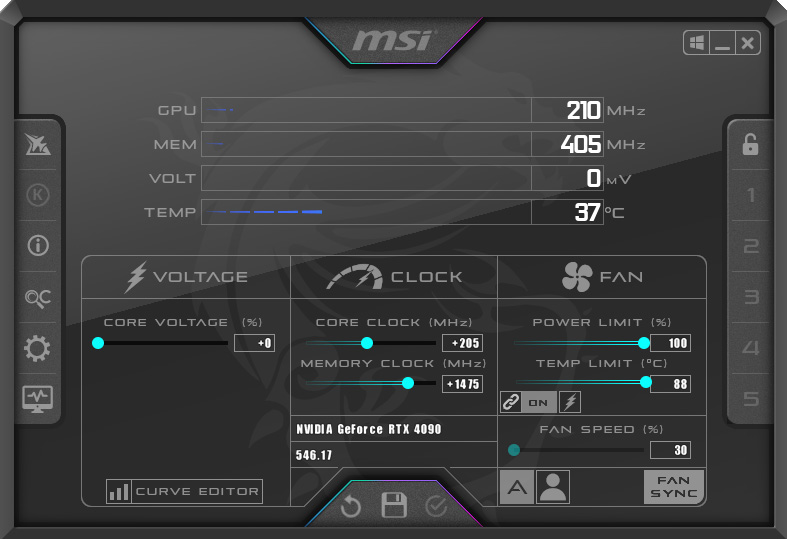 For our manual overclocking tests, we used MSI Afterburner. Our best results are as below.