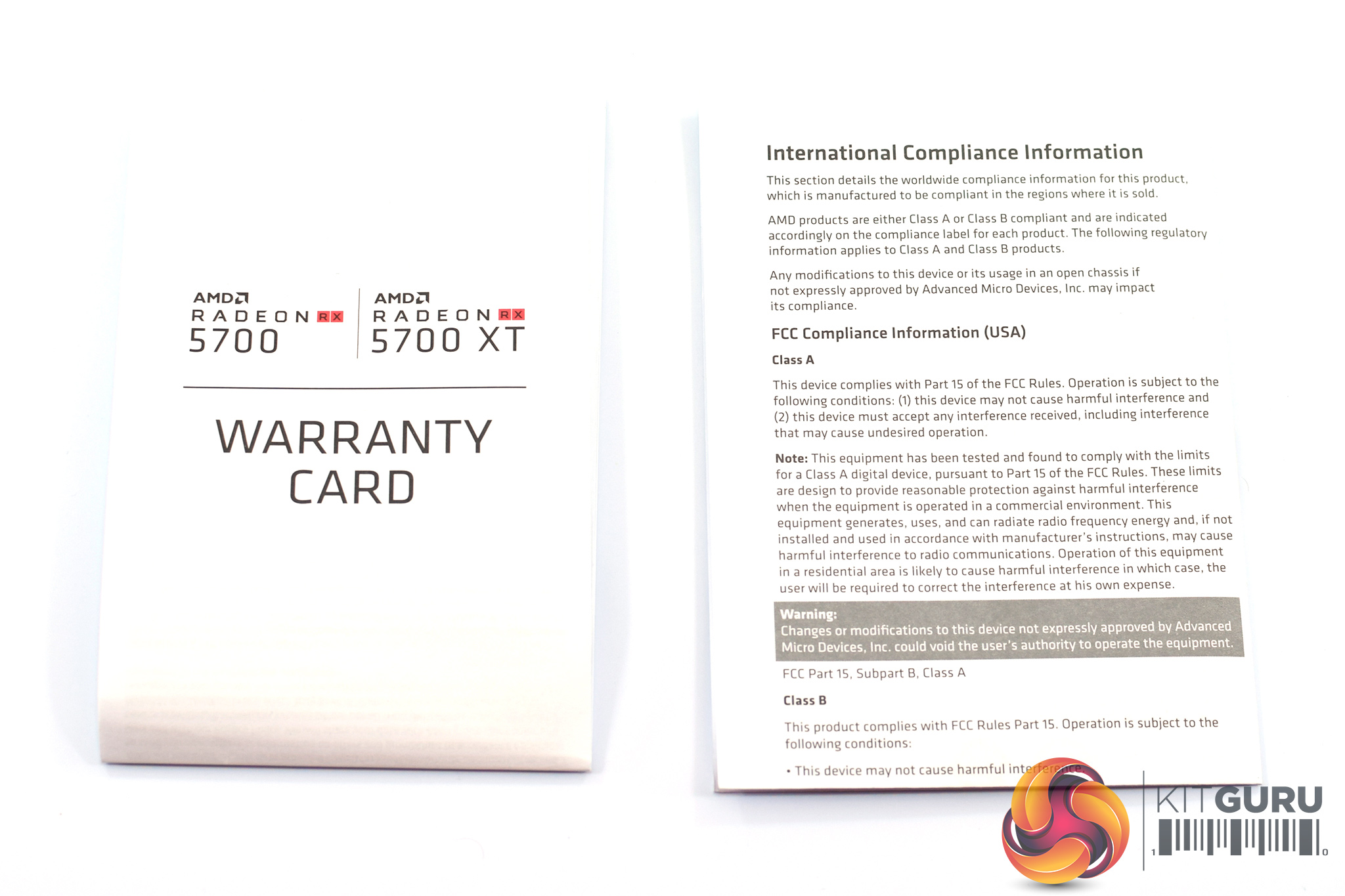 With that done, we get our first look at the card as it sits in a foam surround. Also included is a small warranty card and a leaflet about international compliance information.