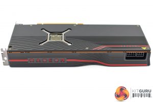 The black backplate also looks good on the dark grey shroud, with some slight Radeon branding in the bottom corner. AMD has left a cut-out behind the GPU core, but aside from that the backplate covers the entirety of the card.