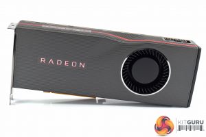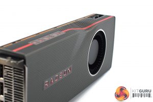 The RX 5700 XT itself certainly very distinctive in terms of its appearance. It has a dark grey aluminium shroud, but unlike the 5700 which is quite plain, this has a number of ridges – or lines – cut into the shroud itself, giving it a very textured feel. On top of that, you can already make out the signature ‘dent' in the top side of the card, but we'll touch on that below.