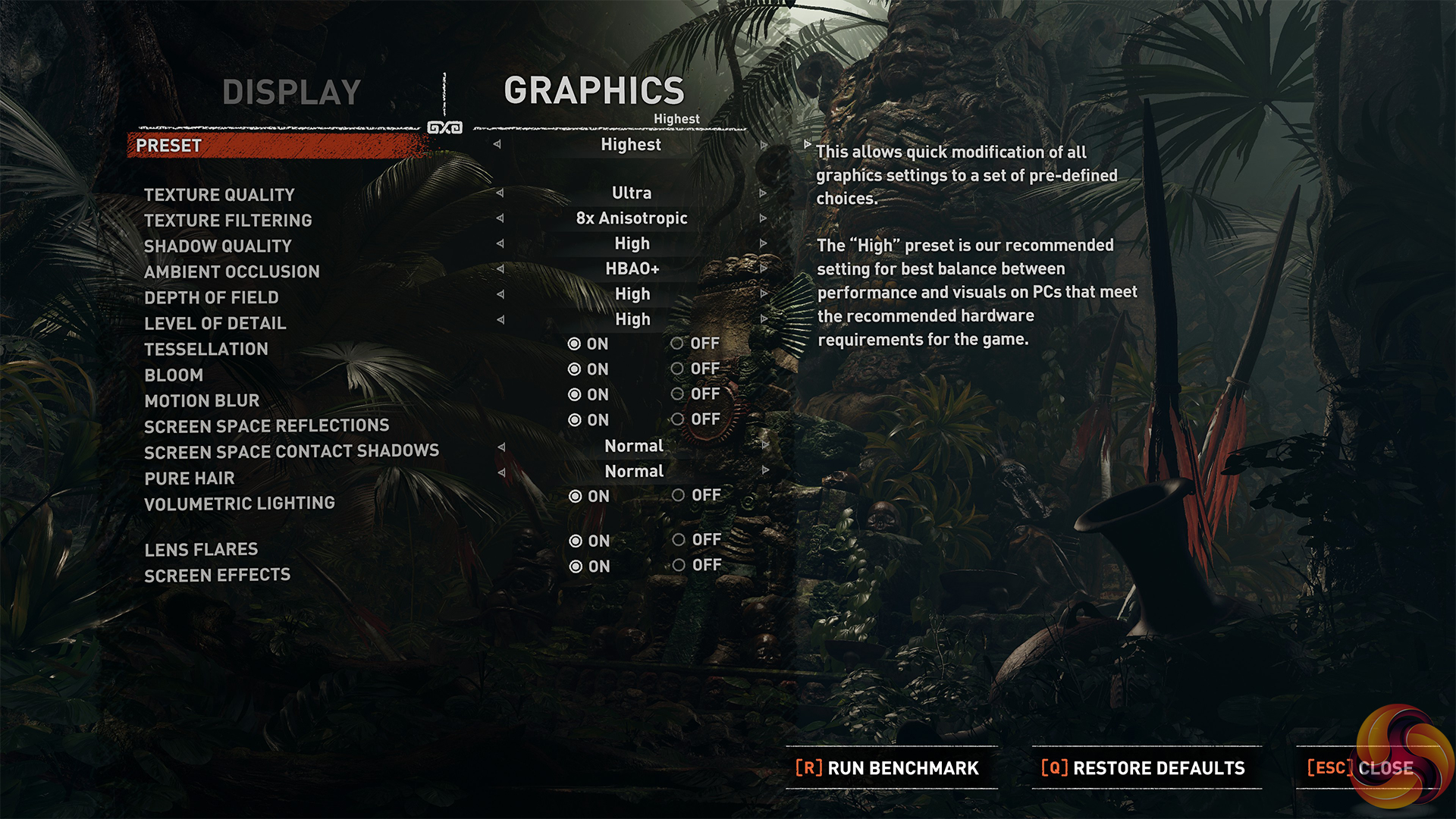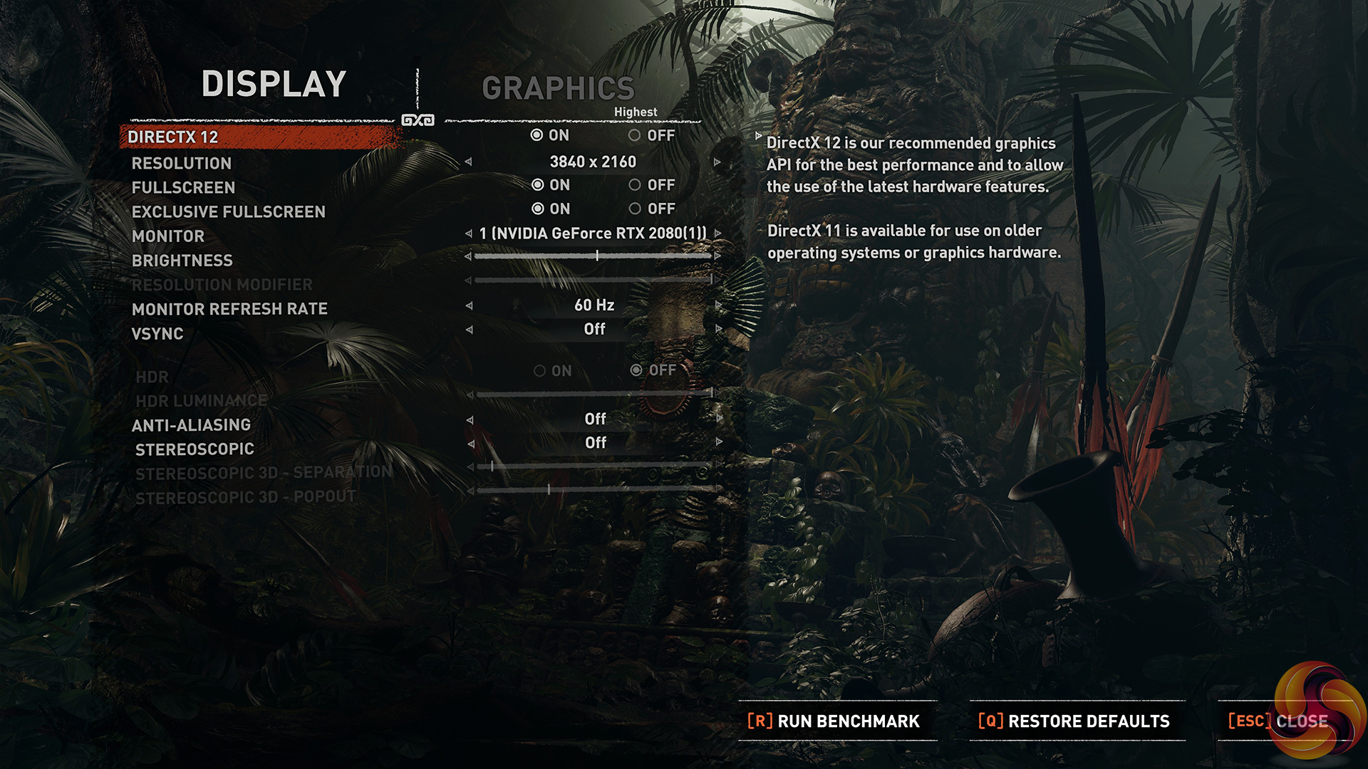 We test using the Highest preset, with AA disabled. We test using the DX12 API.