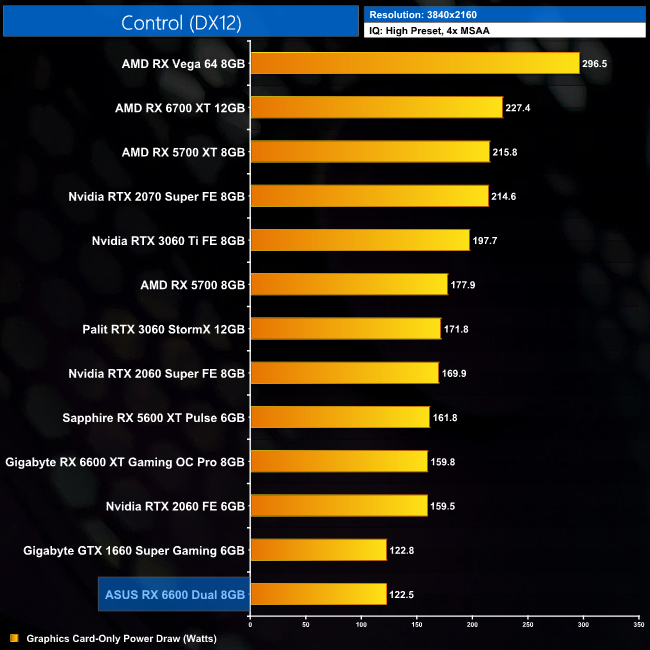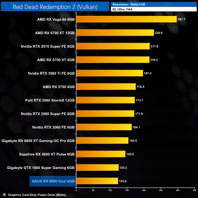 Power draw does not increase as we step up to 4K, with the 6600 still averaging 122.8W. It's a remarkably frugal GPU.