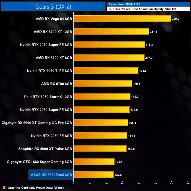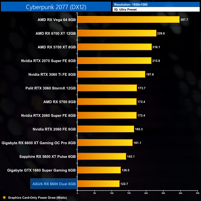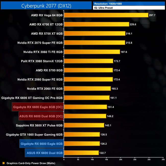 For those interested in total system power draw, RX 6600 will barely put a dent in your PSU. It will depend on your other system components of course, but theoretically this should be fine in something with even just a 300W unit.