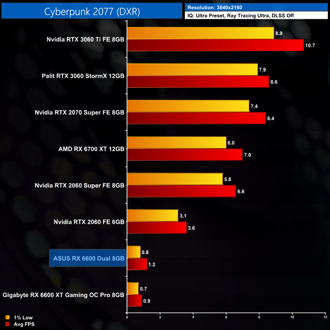 We do also have to point out that Nvidia's GPUs have the benefit of DLSS in this title, making game playing with ray tracing enabled almost infinitely better than what either the RX 6600 or RX 6600 XT can manage.