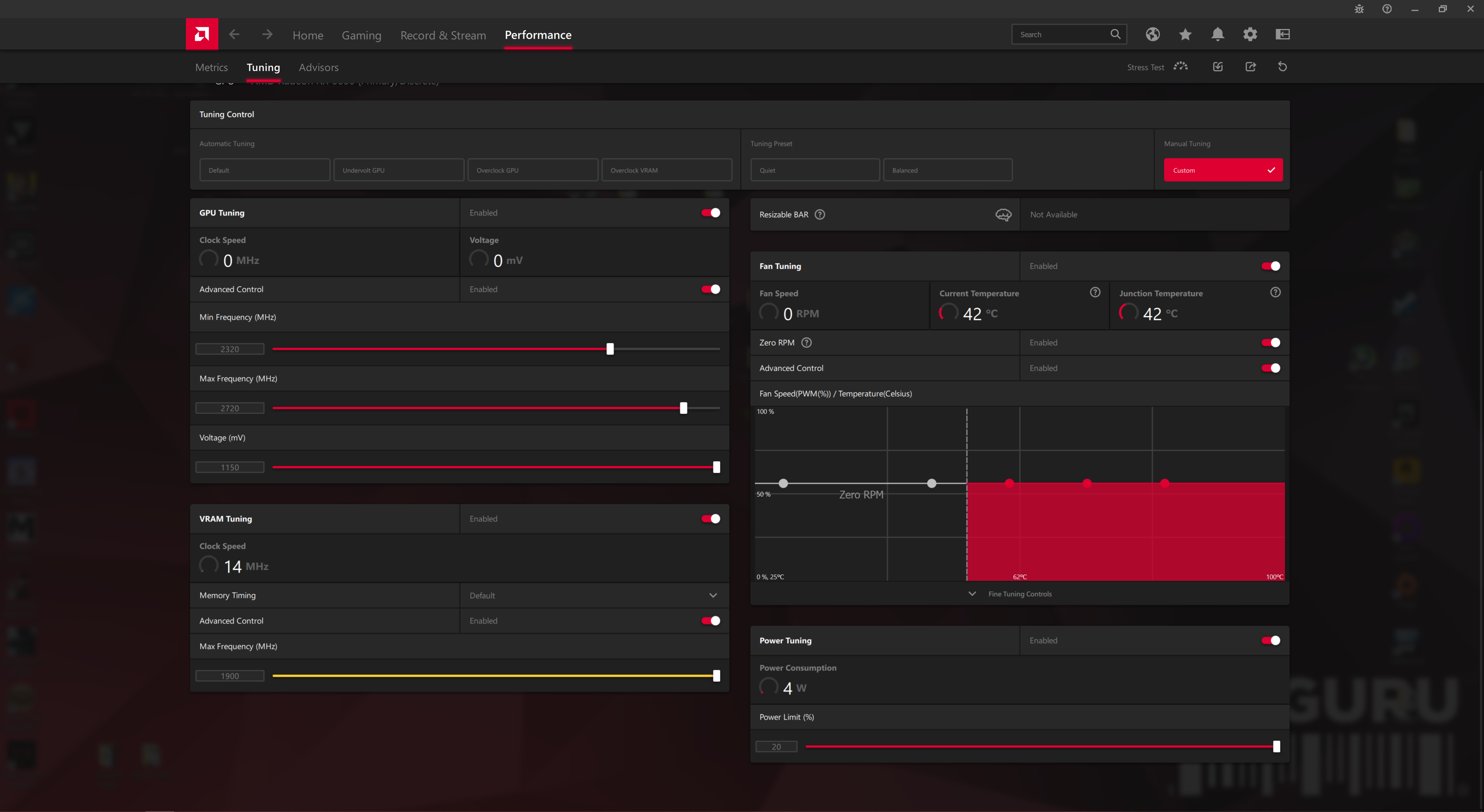 For our manual overclocking tests, we used AMD's built-in tuning tool. Our best results are as below.