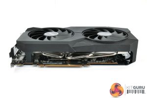 Compared to the ASUS Dual, the Eagle is both thinner and longer. It measures 282 x113 x 41 mm, so while it's just about a dual-slot thickness, it is fairly lengthy for a GPU of this calibre. It weighed in at 659g on my scales.