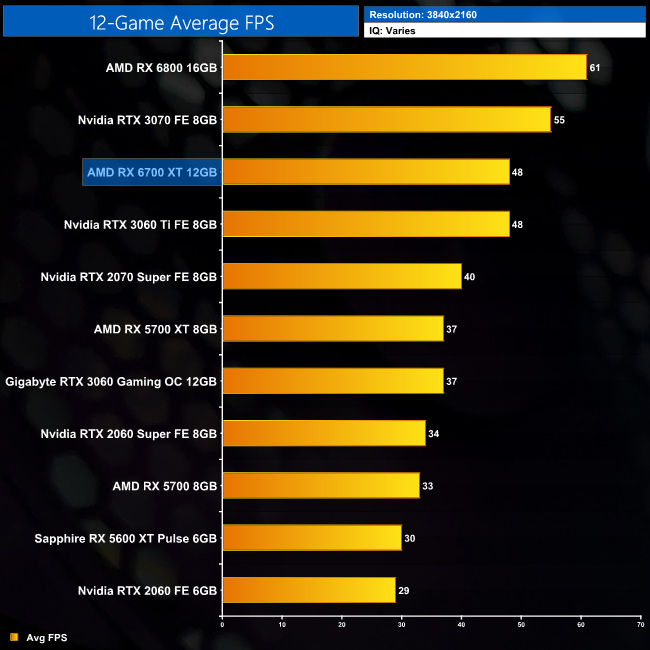 Here we present frame rate figures for each graphics card, averaged across all 12 games on test today. These figures can disguise significant variations in performance from game to game, but provide a useful overview of the sort of performance you can expect at each resolution tested.