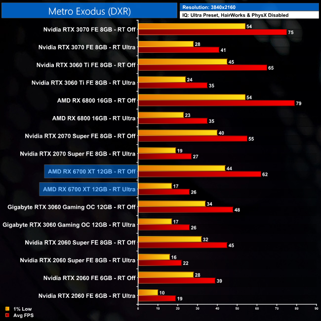 Here we revisit Metro Exodus, this time testing with the in-game ray tracing effects set to their highest values.