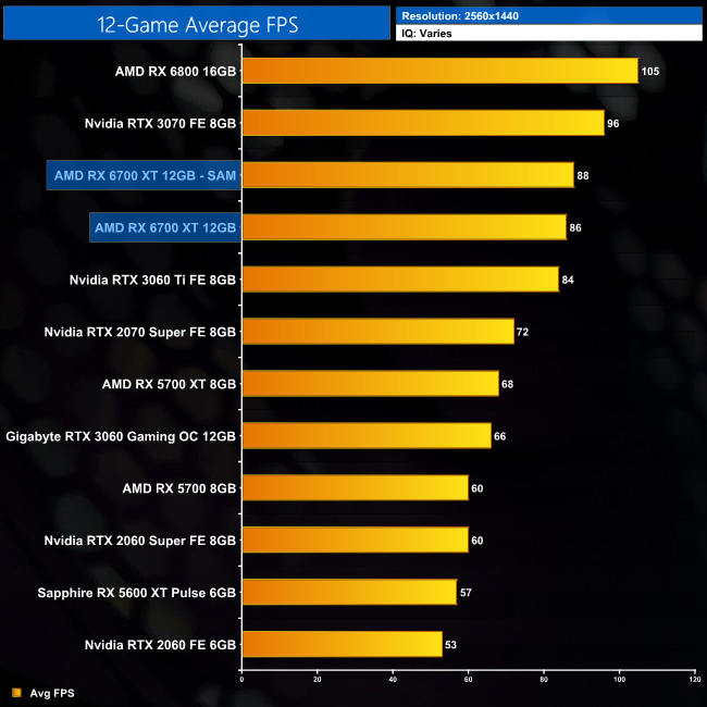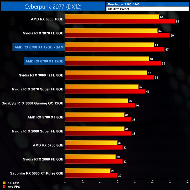 Overall, average performance of the RX 6700 XT improved by 2% with SAM enabled. It's hardly a significant difference and certainly isn't enough to change our conclusion, but it is something.