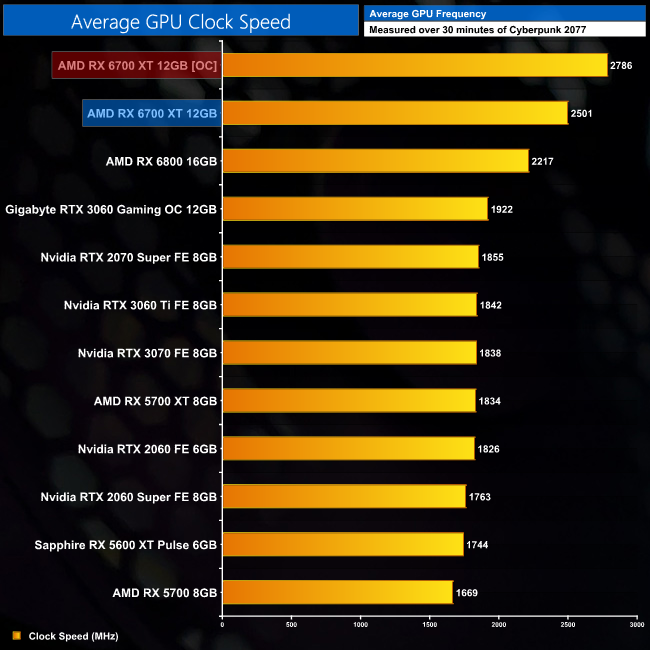 Manual overclocking headroom for the RX 6700 XT is decent, despite the GPU clocks already being significantly higher compared to the RX 6800. Using AMD's driver-based software, I maximised the power limit at 115%, and could then increase the GPU frequency slider up to 2900MHz, with the memory set to 2130MHz.
