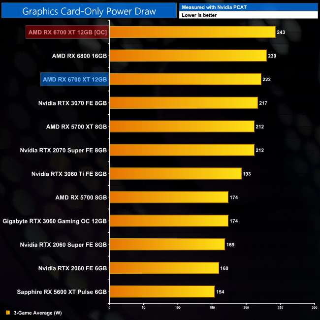 Meanwhile, power draw increased by 21W, or an extra 9% compared to stock behaviour.