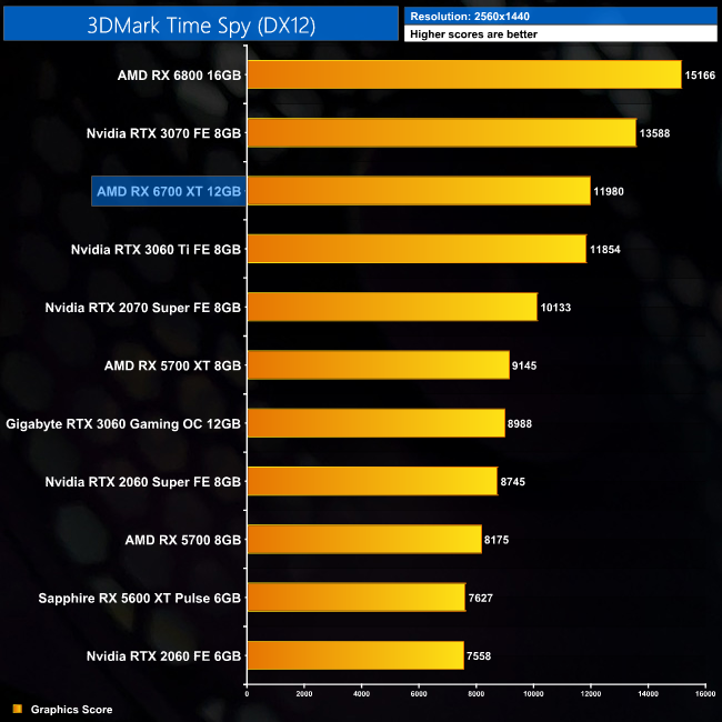 Initial 3DMark scores are promising. The RX 6700 XT is 5% faster than the RTX 3070 in Fire Strike, though it is 12% slower in Time Spy. Compared to the RX 6800, we're looking at scores between 18-21% lower.
