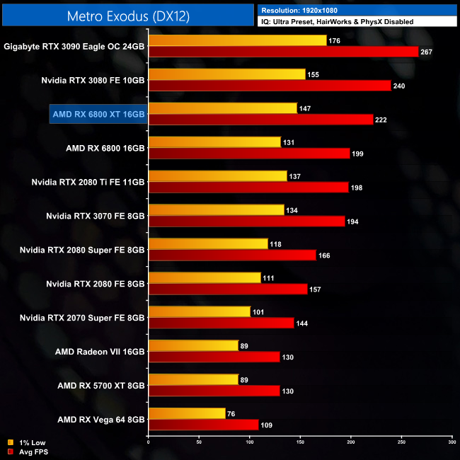 In Metro Exodus, things are a little more consistent. The RX 6800 XT averages 160FPS at 1440p, making it 6% slower than the RTX 3080.