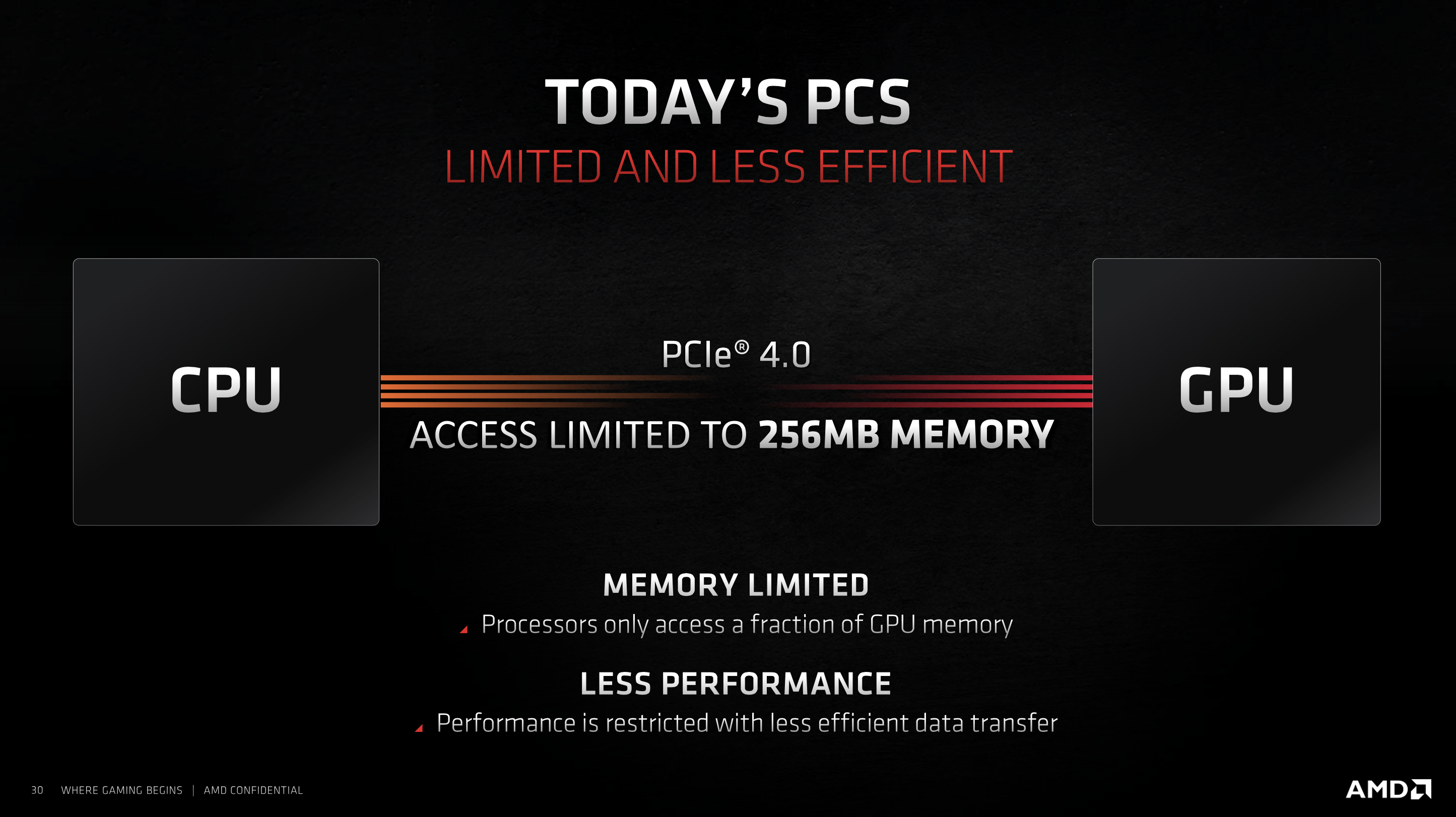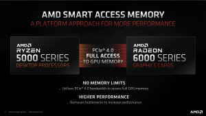 “As the only company offering high performance gaming CPUs and GPUs, AMD is in a unique position to deliver incredible PC gaming experiences. With AMD Smart Access Memory , we have designed, optimized and validated both hardware and software technologies with all combinations of Ryzen 5000 Series processors, Radeon RX 6000 Series graphics cards, AMD 500 Series motherboards and the latest drivers and BIOS at launch. We believe this pairing unlocks maximum platform performance. Smart Access Memory is built on features of the PCIe standard and firmware standards (Resizable BAR), and was developed through extensive validation and platform optimization. We welcome the opportunity to support other hardware vendors in their efforts as part of our ongoing commitment to using common and open standards to improve gaming experiences.”