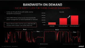 With this on-die cache, AMD says it can deliver frame data at lower energy per bit when compared to a solution delivering the equivalent bandwidth via traditional means. With the Infinity Cache, AMD claims it can deliver over double the bandwidth of a 384-bit GDDR6 interface, with minimal increases to power. All told, the company claims up to 2.4x increased bandwidth per Watt.
