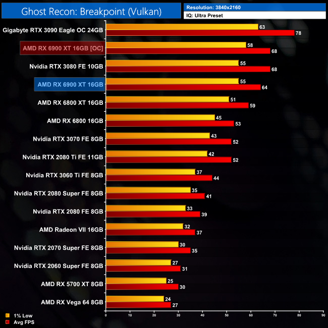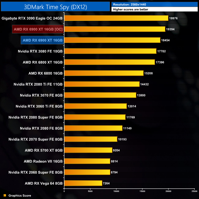This overclock resulted in performance gains of between 5-6% in the games we re-tested at 4K. It's not huge, but we found the same with the reference 6800 XT, and custom cards like the PowerColor Red Devil and Sapphire Nitro+ did significantly better, so it's likely going to be the same for the 6900 XT.