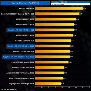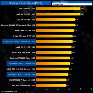 And then at 4K, we can see the RX 6950 XT Nitro+ is now 19% less efficient than the original RX 6900 XT. That's the price you pay to push clock speeds that bit higher, as we quickly run into diminishing returns.