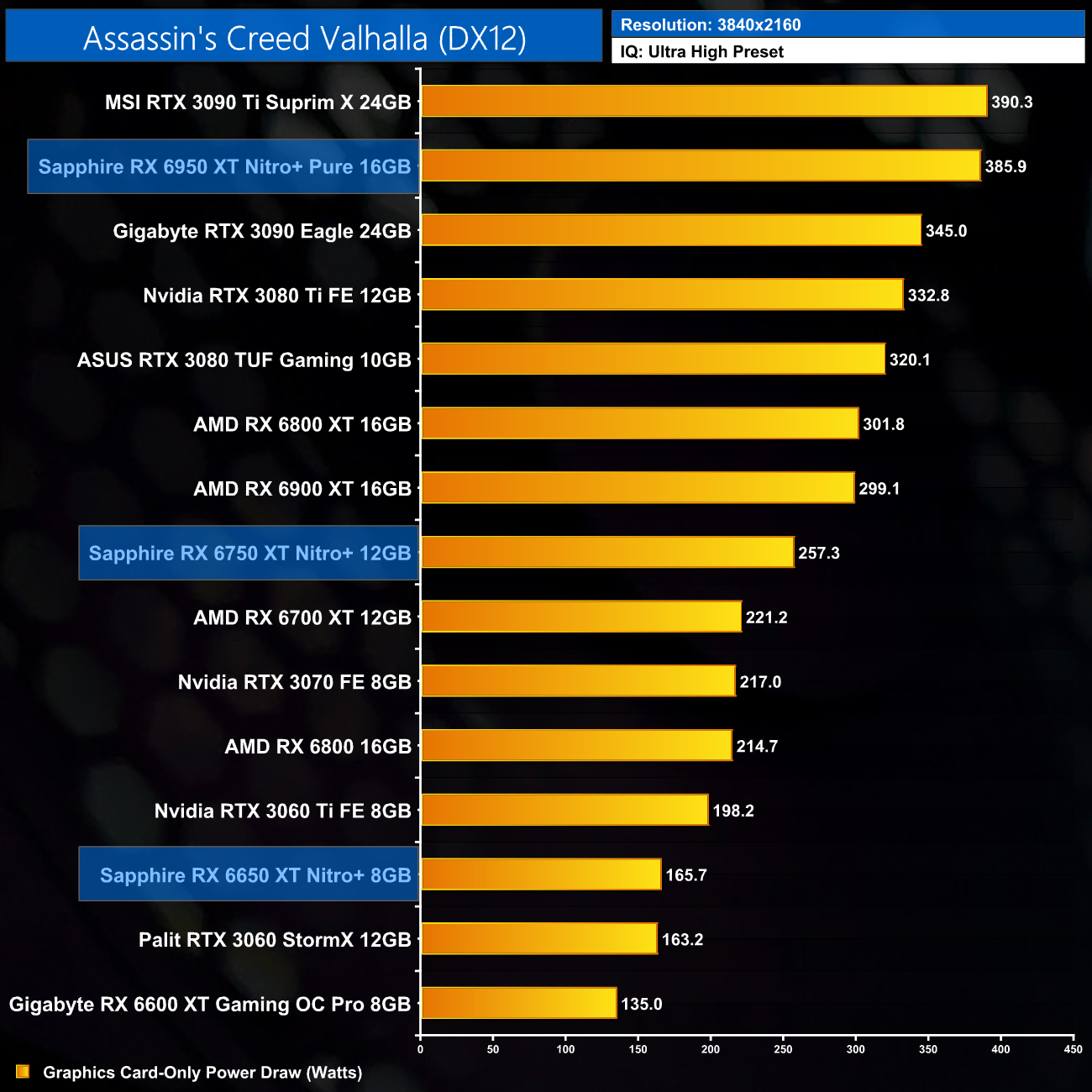 As for 4K, this is too much for the 6650 XT to handle, but the 6750 XT still puts in a good shift and is only just slower than the RTX 3070. Sapphire's RX 6950 XT does fall behind the RTX 3090 Ti however, but that is to be expected at this resolution.