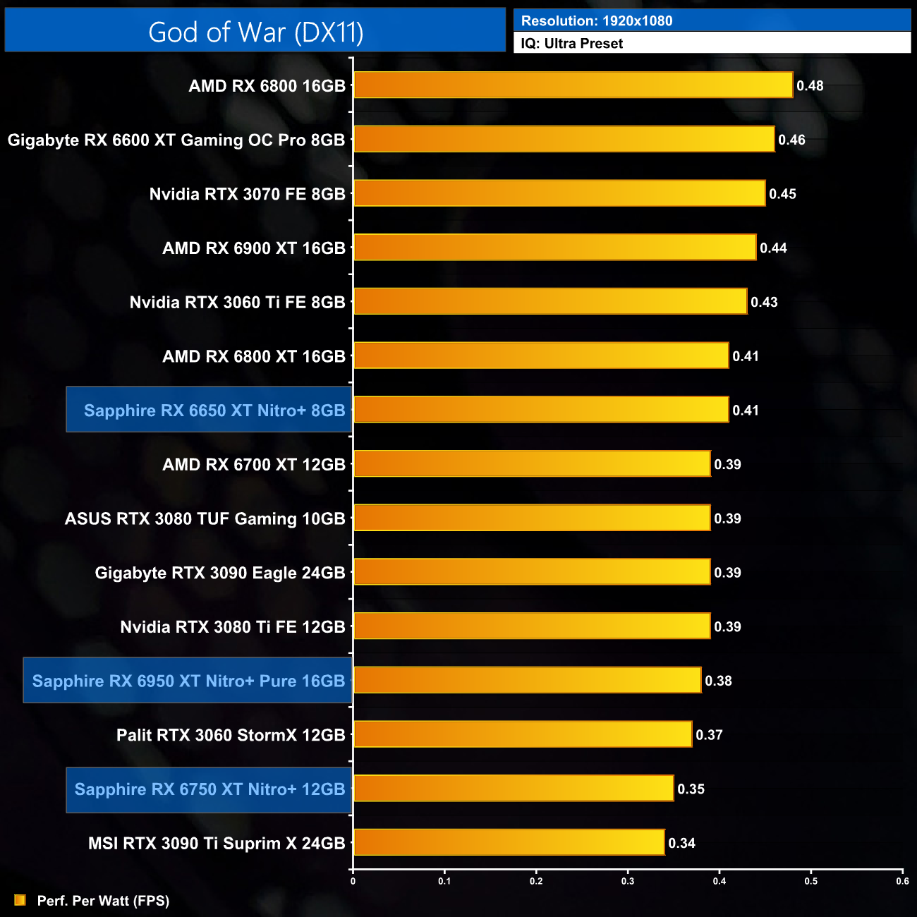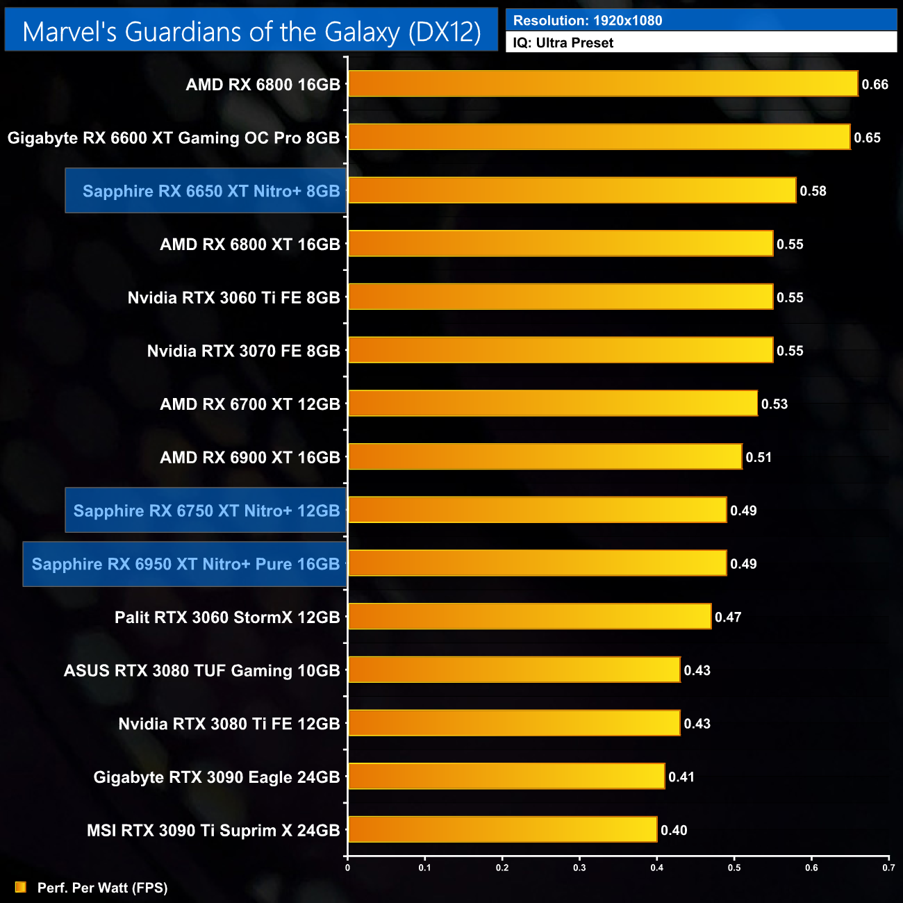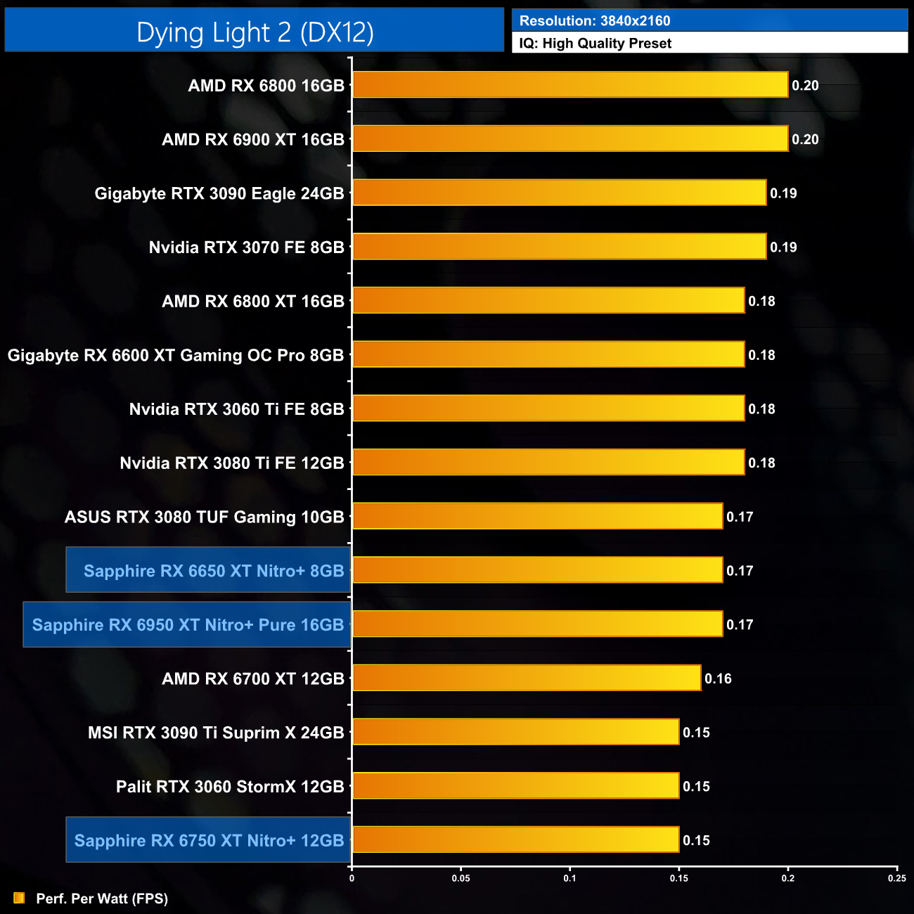 And then at 4K, we can see the RX 6950 XT Nitro+ is now 19% less efficient than the original RX 6900 XT. That's the price you pay to push clock speeds that bit higher, as we quickly run into diminishing returns.