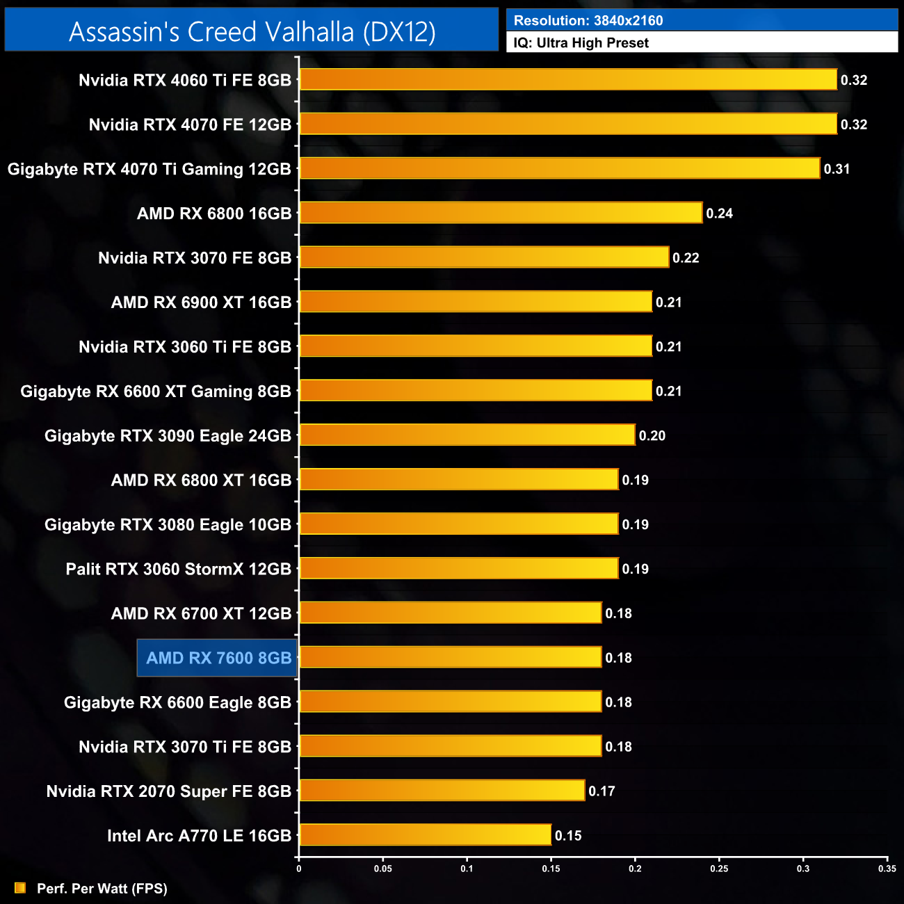 4K data is again less relevant, but we see identical efficiency to the RX 6600.