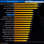 Using the average frame rate data presented earlier in the review, here we look at the cost per frame using the UK MSRP launch prices for each GPU.