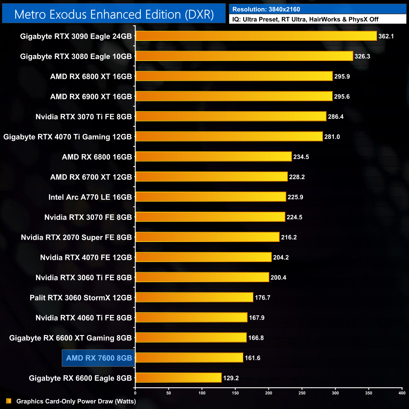Ray tracing power draw is almost identical too, averaging 159.5W.