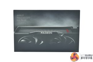 The front side of the card is home to the Radeon logo, and we can see just three of the heatsink fans have been painted red, as we saw on the 7900 XTX/XT reference cards.