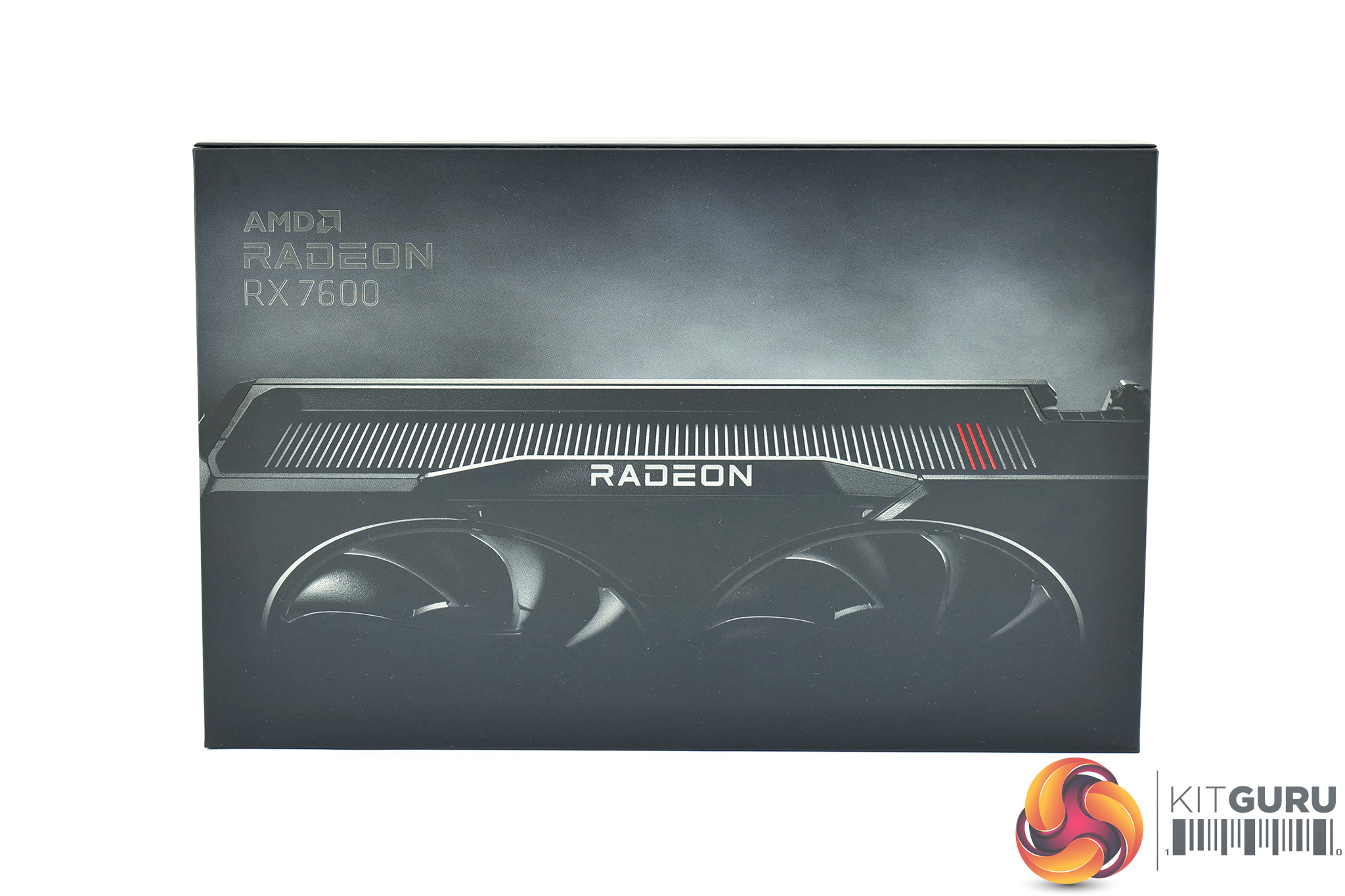 The AMD RX 7600 ships in a compact box, with a semi-obscured image of the graphics card visible on the front. Inside we find just a few pieces of documentation, encouraging the user to scan a QR code to access the full quick-start guide and user manuals.
