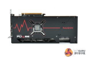 The side of the card is home to the Radeon and Sapphire logos, again coloured red. We can also note the full-length metal backplate, with the Pulse branding and an ECG printed in red – a staple of the Pulse series throughout the years.