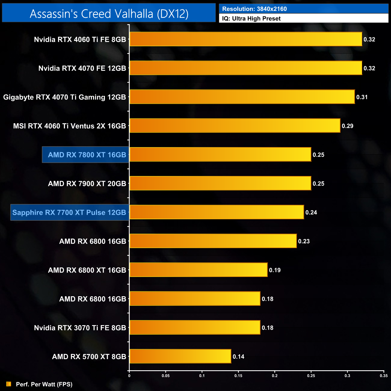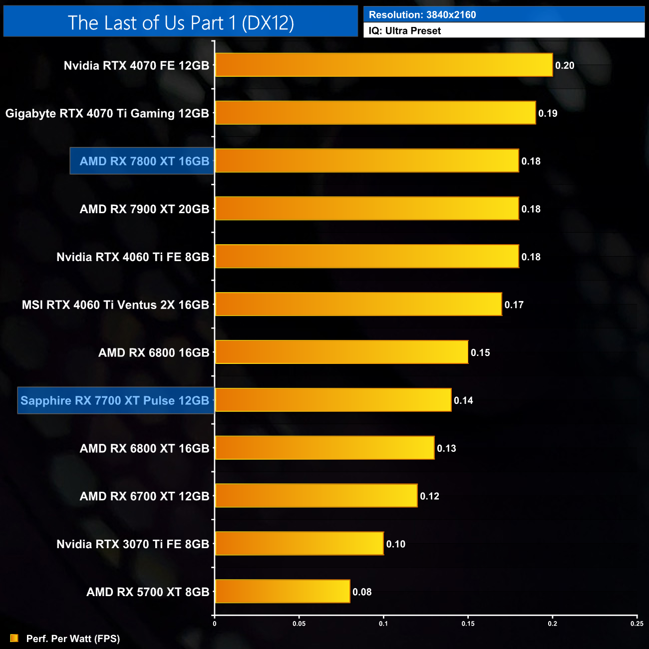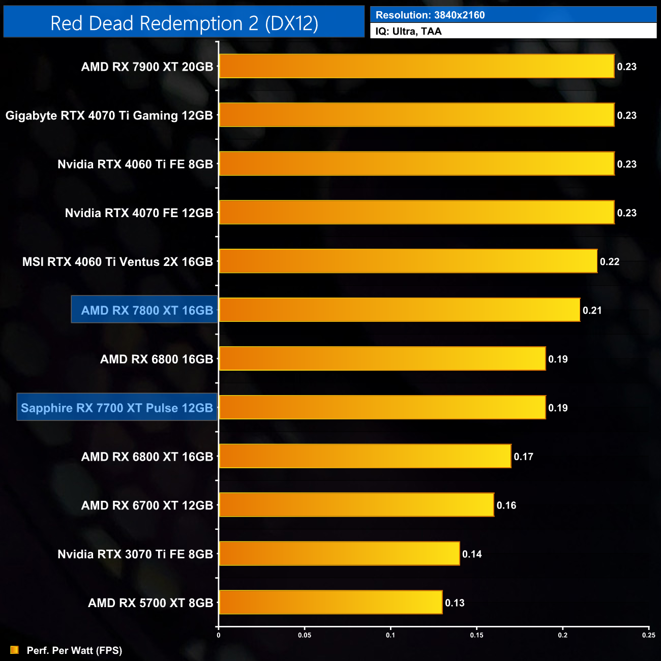 Lastly, for 4K gaming the RX 7800 XT is within touching distance of the RTX 4060 Ti 16GB, but it still lags behind the RTX 4070, this time by a 15% margin.