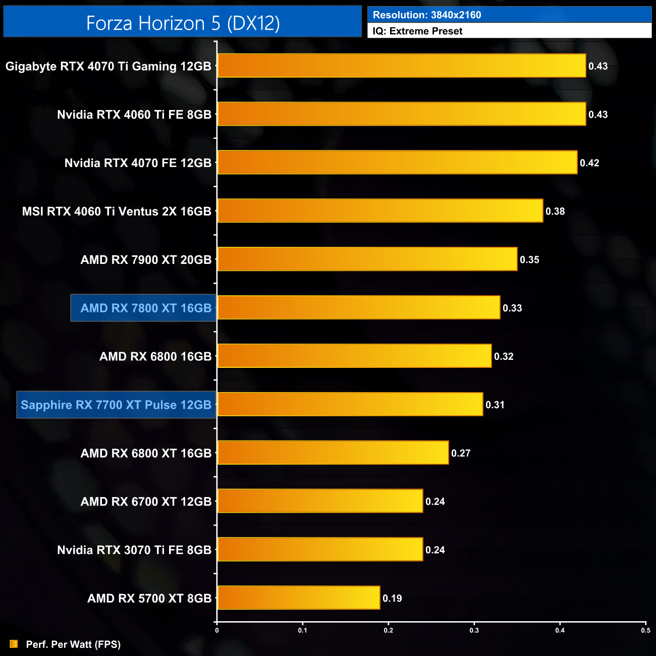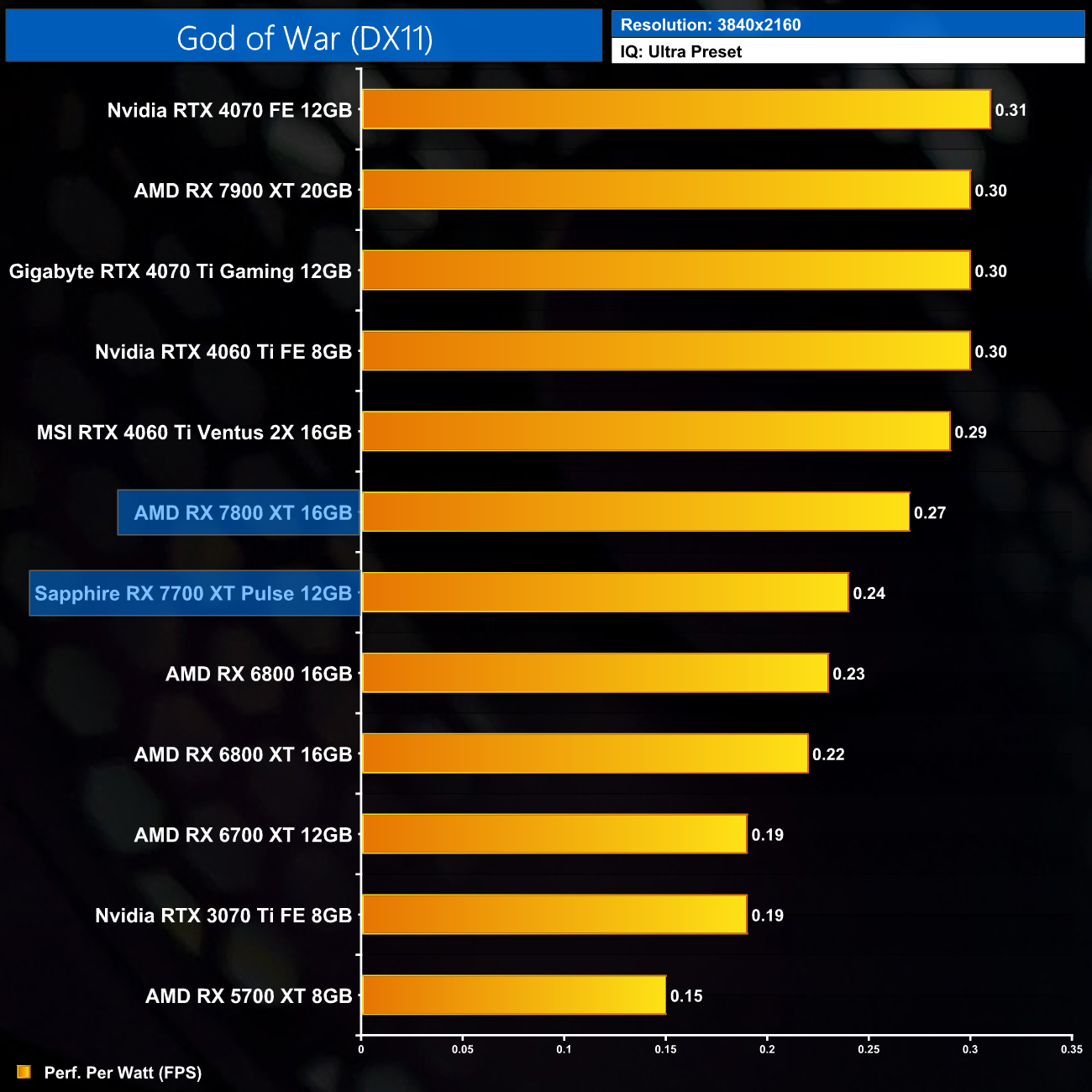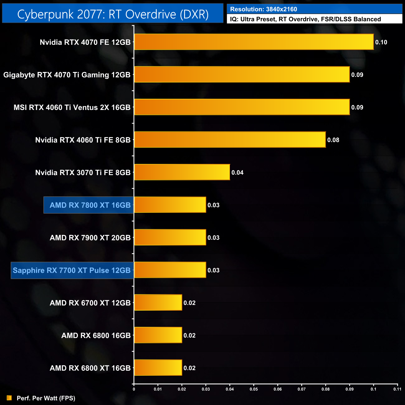 Using the graphics card-only power draw figures presented earlier in the review, here we present performance per Watt on a per-game basis for all twelve games we tested at 2160p (4K).