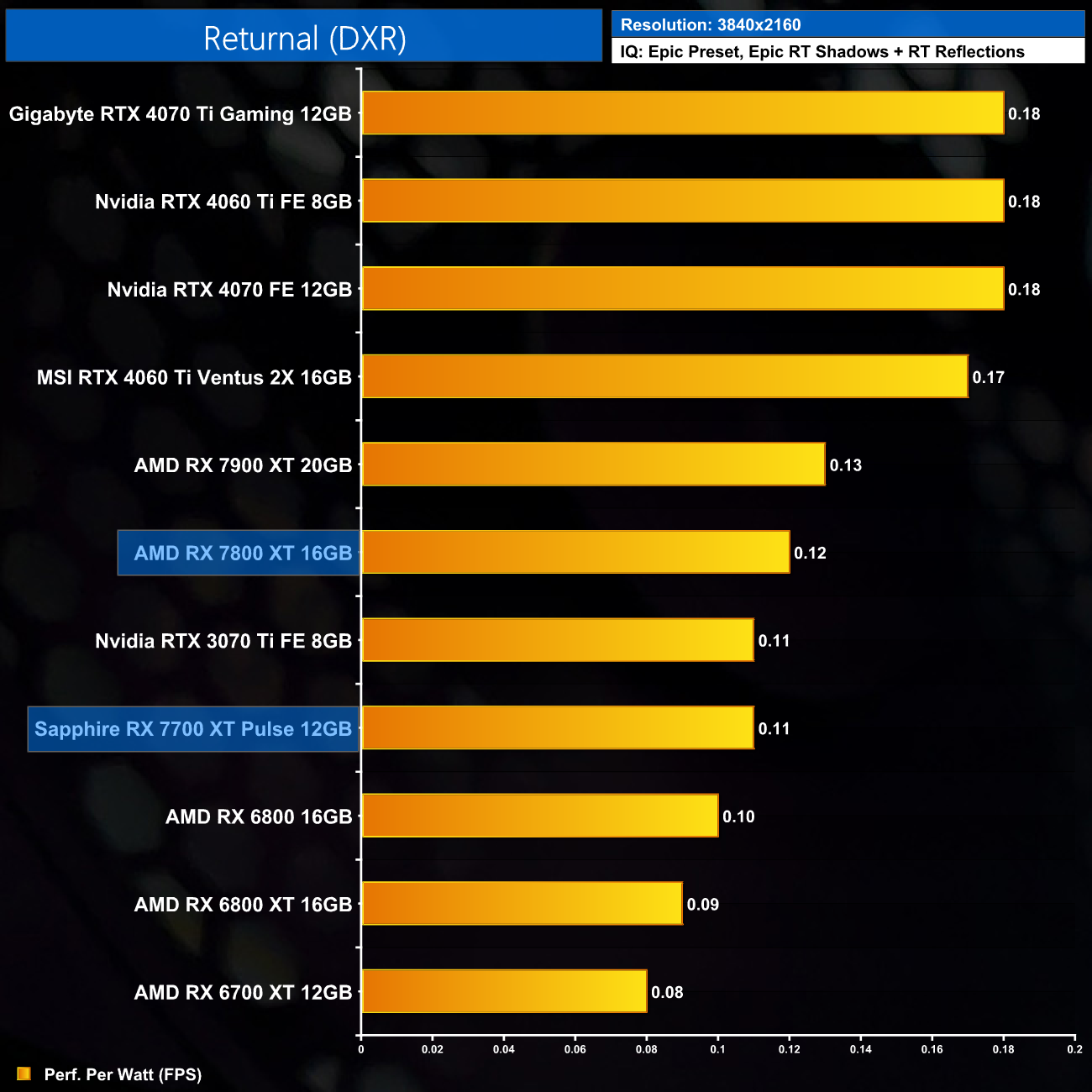 Likewise, for the RT titles, we're still looking at a 43% deficit for the RX 7800 XT compared to the RTX 4070.
