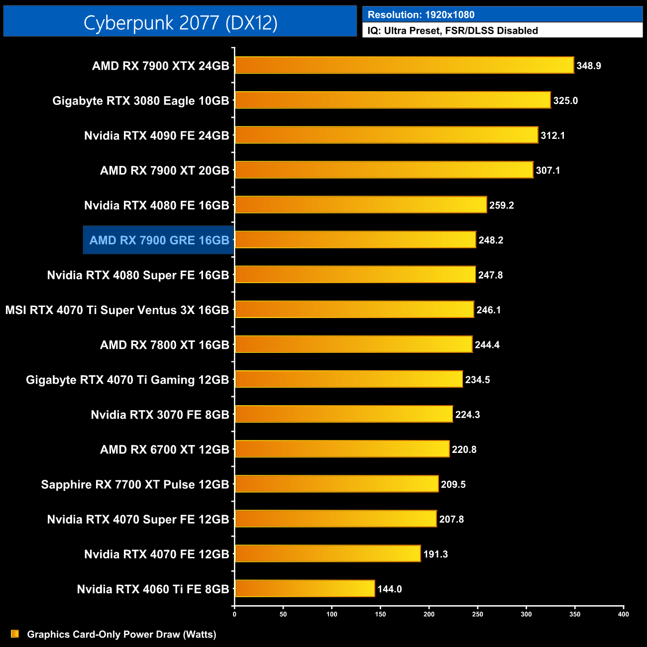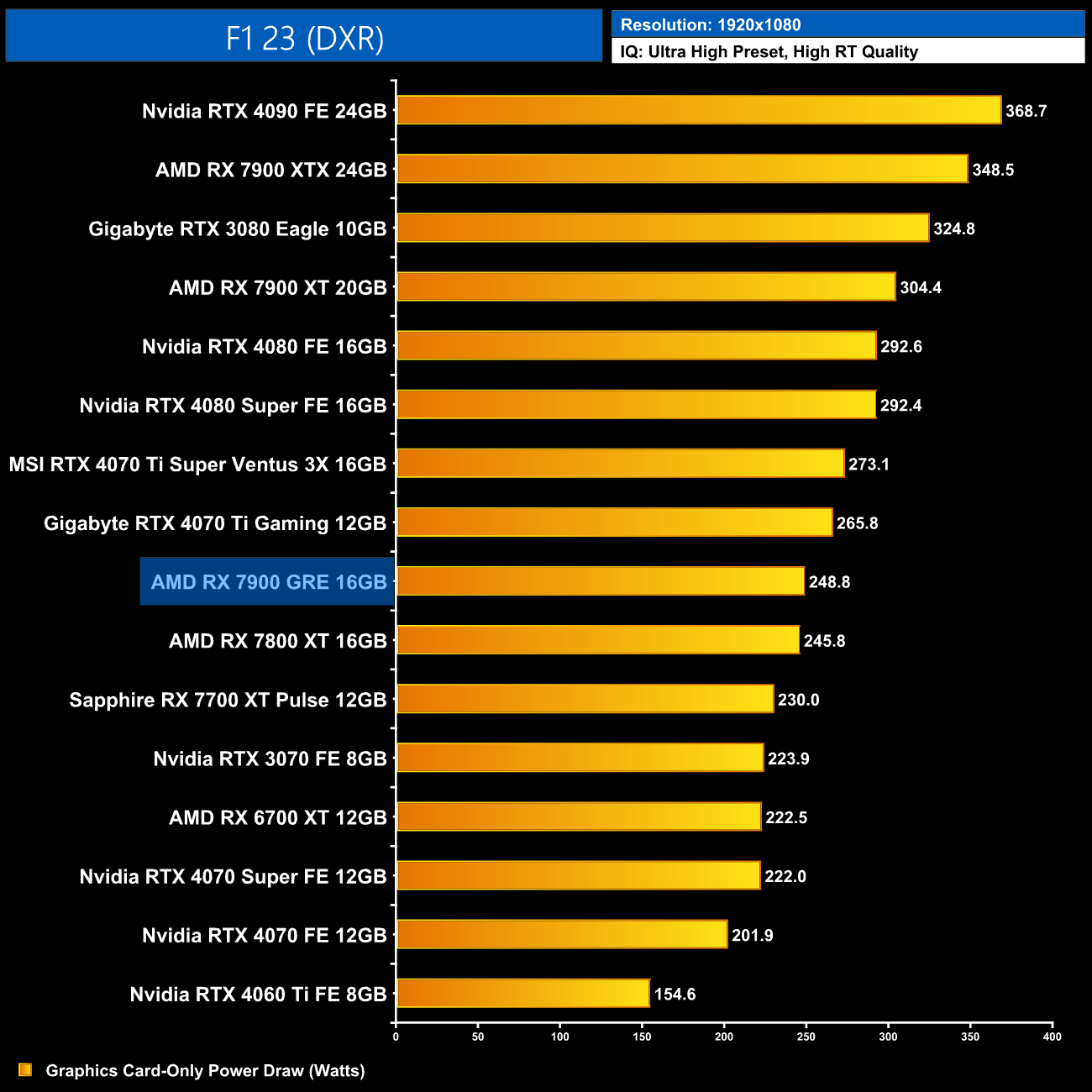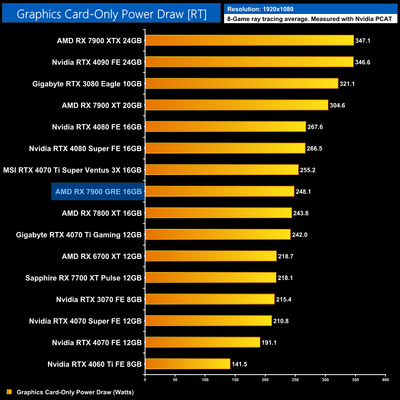 Here we present power draw figures for the graphics card-only, on a per-game basis for all twelve games we tested at 1080p. This is measured using Nvidia's Power Capture Analysis Tool, also known as PCAT. You can read more about our updated power draw testing methodology HERE.