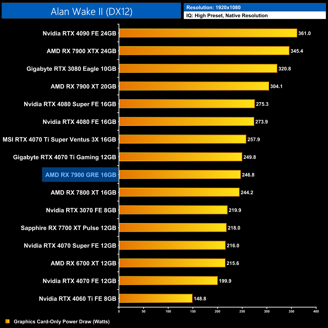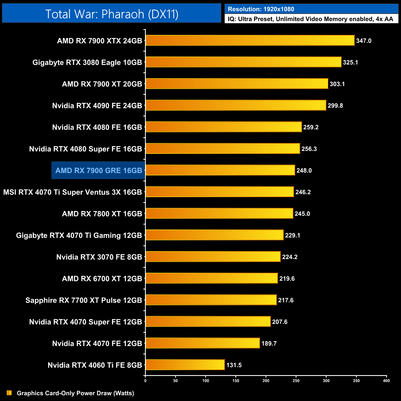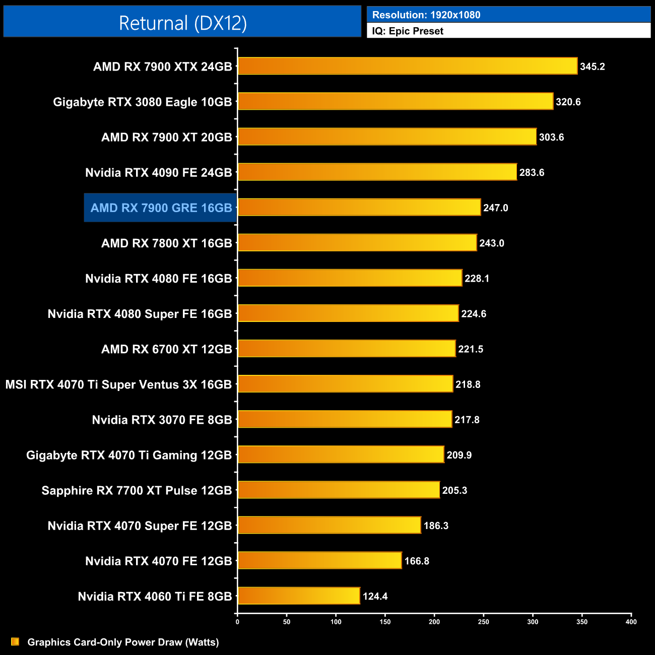 Here we present power draw figures for the graphics card-only, on a per-game basis for all twelve games we tested at 1080p. This is measured using Nvidia's Power Capture Analysis Tool, also known as PCAT. You can read more about our updated power draw testing methodology HERE.