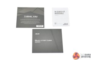 Inside, the only included accessories are these three leaflets – a thank you note, warranty note and quick start guide.