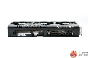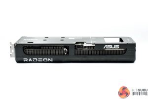 As for the backplate, this is a full length brushed metal design, with just a small flow through area towards the end of the card. ASUS has also fitted a dual-BIOS switch, offering a choice of Performance or Quiet modes.