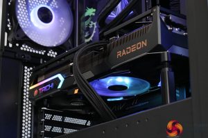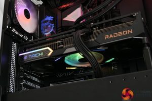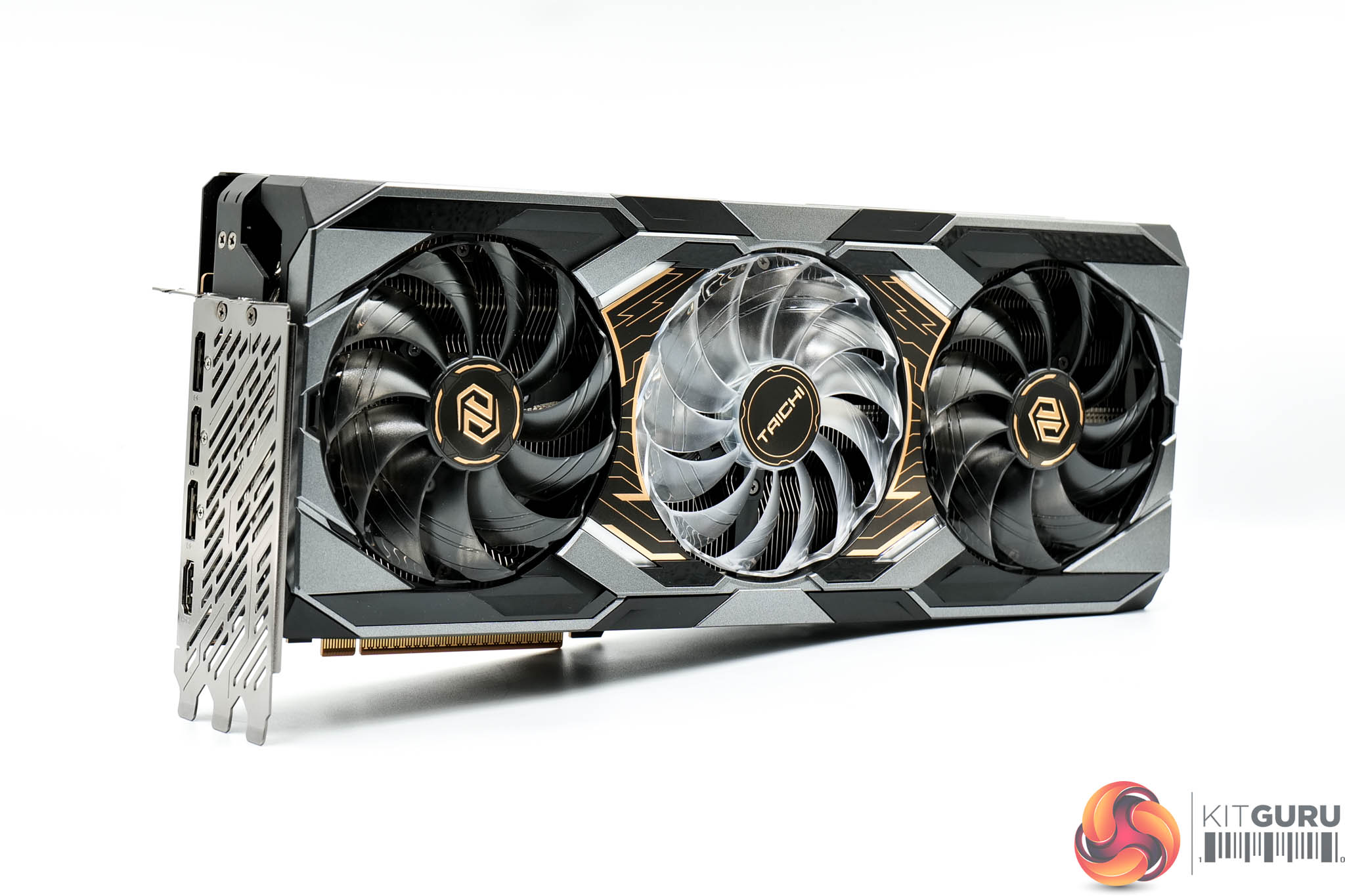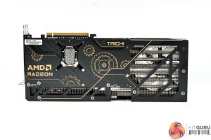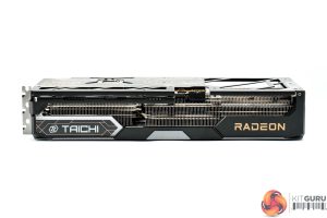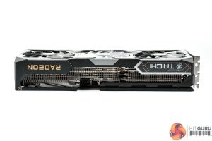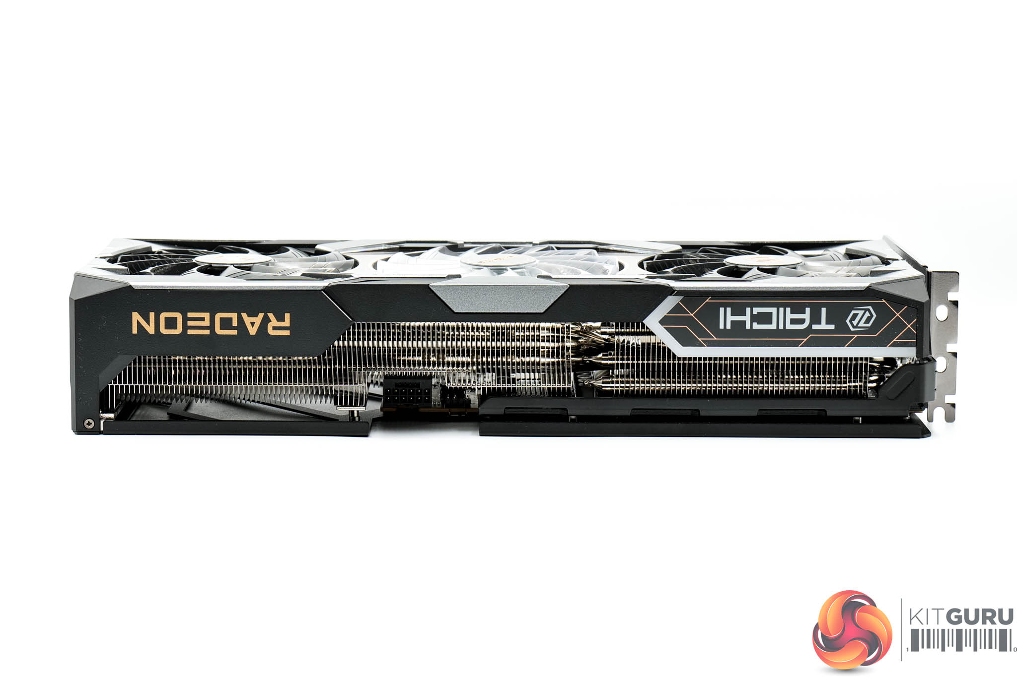 The front side of the card is home to the Taichi and Radeon logos – the former lights up as an RGB zone once powered on.