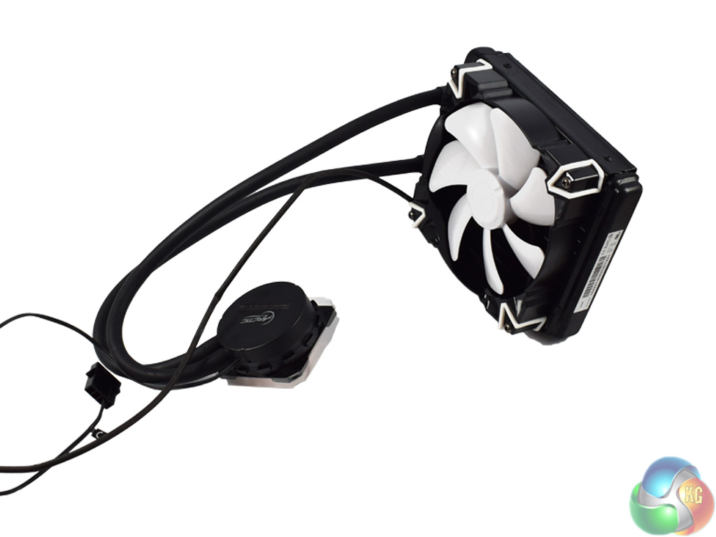 The pump/waterblock is a standard Asetek affair with Arctic branding on the top. It also requires a Molex connector for additional power – I would have preferred to see a SATA connector instead, but it is a minor issue.
