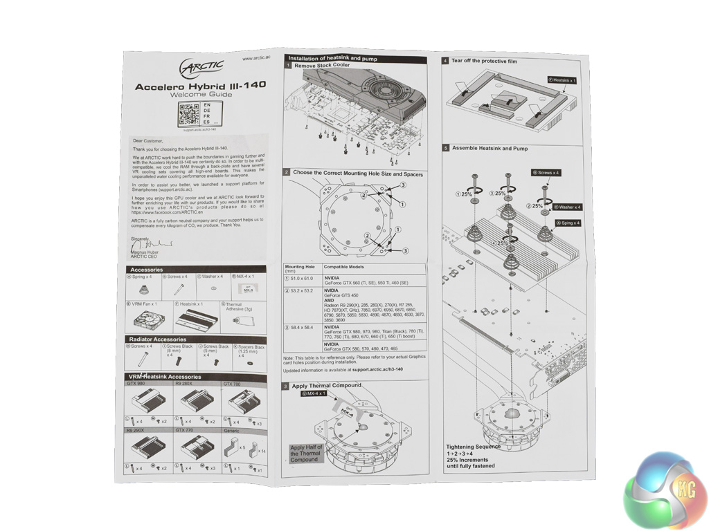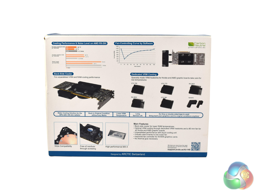 On the back is a selection of key features about the Accelero Hybrid III-140, as well as information about which graphics cards are supported.