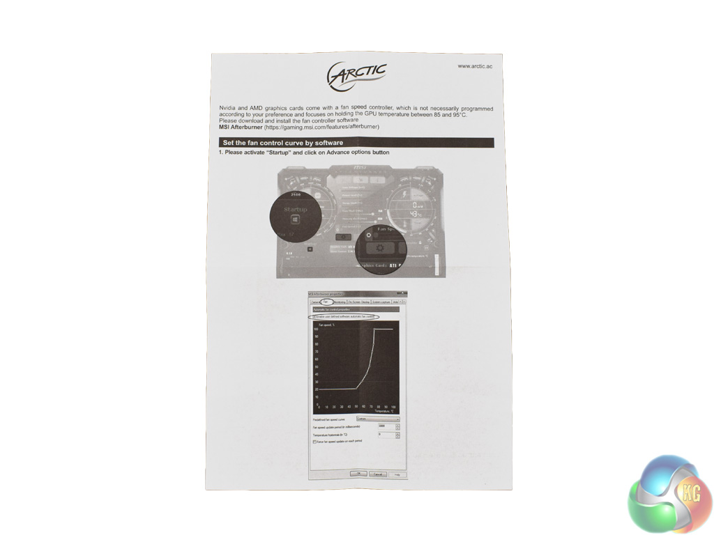 Inside the box we find two manuals. The first is the installation guide which walks you through the installation process. The second leaflet is a short guide which explains how to download fan control software for the GPU.