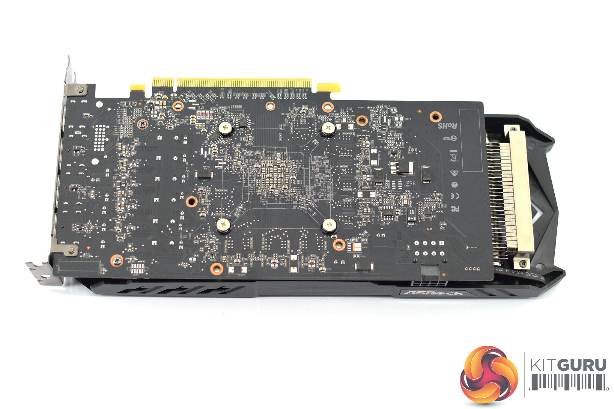 One important thing to note is the lack of a backplate. ASRock says this is to help with heat dissipation, but we will get to the thermal side of things later. I personally prefer all my graphics cards to have backplates, both for the aesthetics and for the added protection they can offer if you spill something onto the back of the card (i.e. if your liquid cooler leaks!).