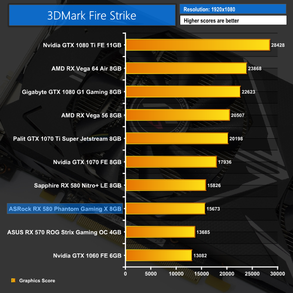 It's a decent start for the Phantom Gaming X RX 580. It is marginally behind the higher-clocked Sapphire Nitro+ Limited Edition (1408MHz vs 1450MHz) but that is to be expected.