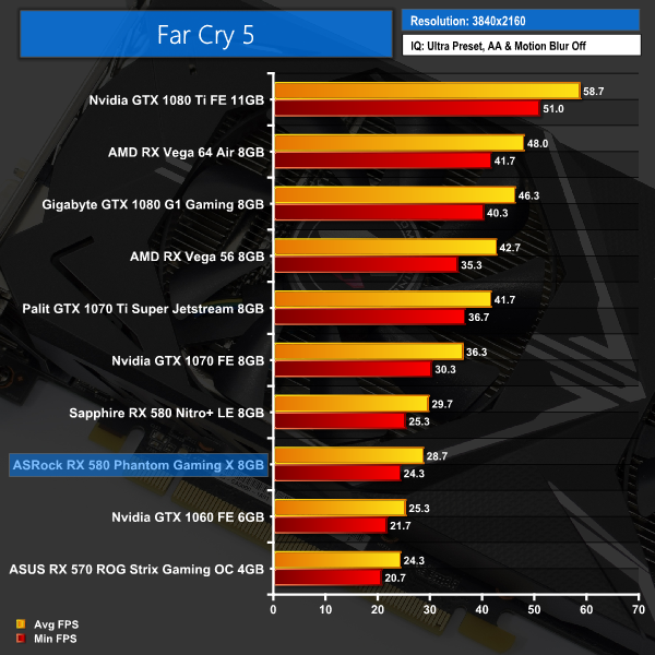Keeping in trend with what we have seen previously, the Phantom Gaming X is right on the heels of the Sapphire RX 580, and provides very playable frame rates at 1080p and 1440p resolutions.