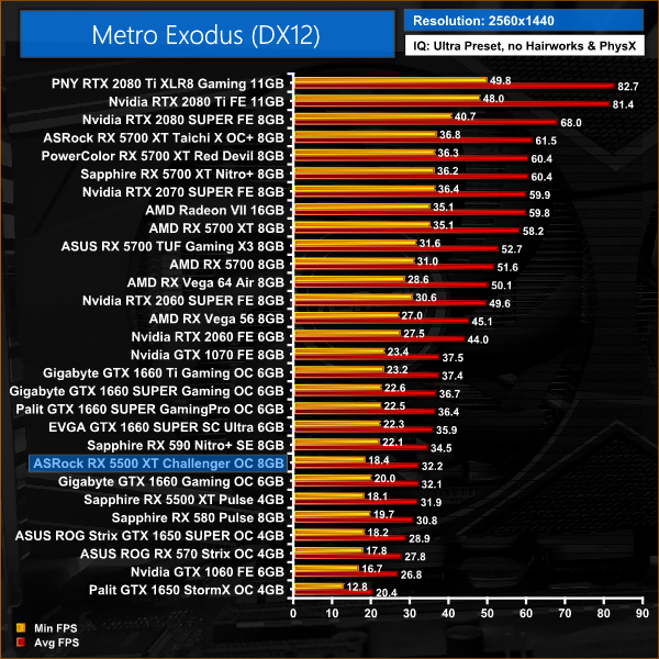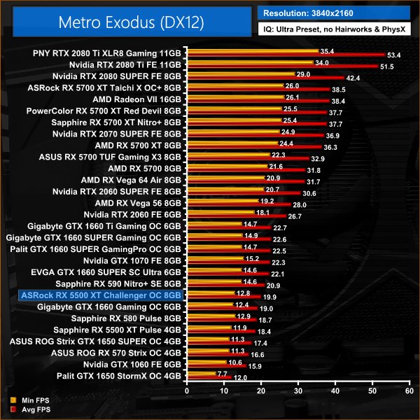 Metro Exodus sees the 5500 XT 8GB run the 1660 close, but Nvidia's card is still 5% faster at 1080p.