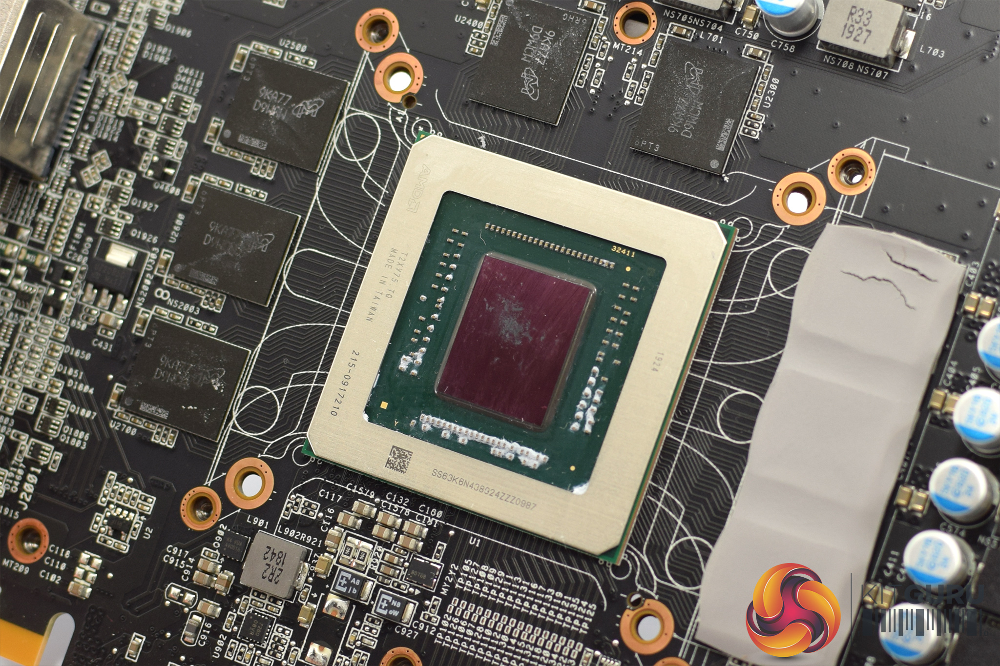 Once we remove the heatsink from the card, we can get a look at the PCB, though most of it is obscured by a large metal frame that acts as a secondary heatsink for the memory chips.