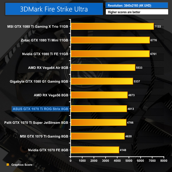 It's a good start for the Strix GTX 1070 Ti – it proved faster than both the MSI and Palit GTX 1070 Tis across all three 3DMark tests.