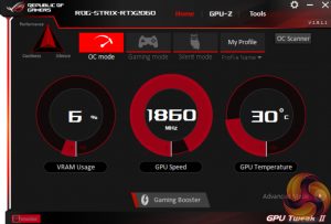 Unlike the other RTX 20-series cards, Nvidia's RTX 2060 Founders Edition is not a factory overclocked model – it ships with the reference boost clock of 1680MHz. That means it is up to Nvidia's partners to ship factory overclocked models which push the boundaries of what a 2060 is capable of. This ASUS ROG RTX 2060 Strix OC, for instance, has an 1830MHz boost clock – but you can increase this to 1860MHz by enabling ‘OC Mode' within ASUS' GPU Tweak II software.
